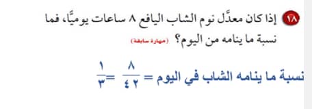 اذا كان معدل نوم الشاب اليافع 8 ساعات يوميا فما نسبة ما ينامه من اليوم مجتمع الحلول
