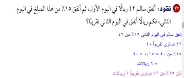 انفق سالم 42 ريالا في اليوم الاول ثم انفق 15 من هذا المبلغ في اليوم الثاني فكم ريالا انفق في اليوم الثاني تقريبا مجتمع الحلول