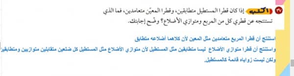 اذا كان قطرا المستطيل متطابقين وقطرا المعين متعامدين فما الذي تستنتجه عن قطري كل من المربع مجتمع الحلول