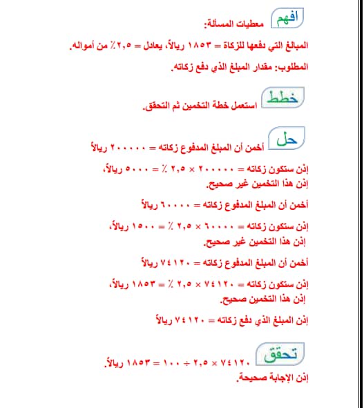 تقدير النسبة المئوية ص19 المصدر السعودي