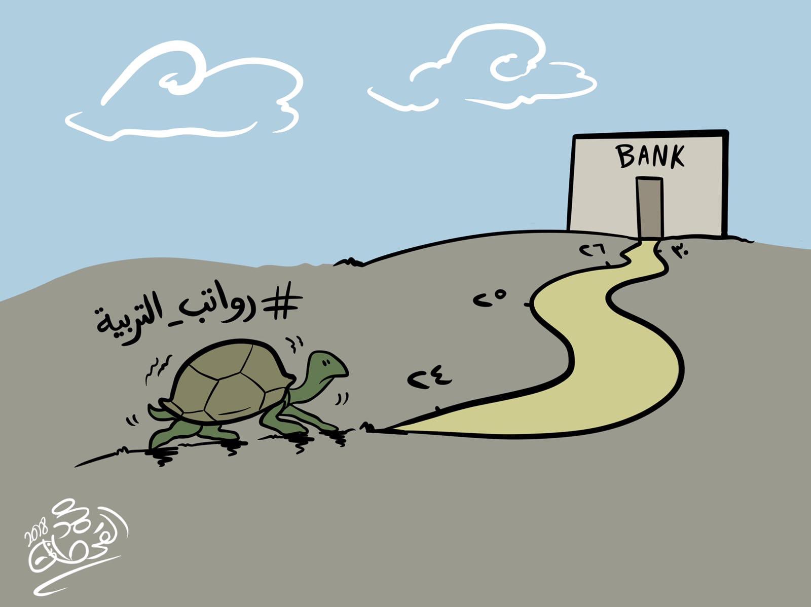 الرابعة نيوز Twitterissa كاريكاتير عن تأخر صرف رواتب التربية للرسام محمد القحطاني