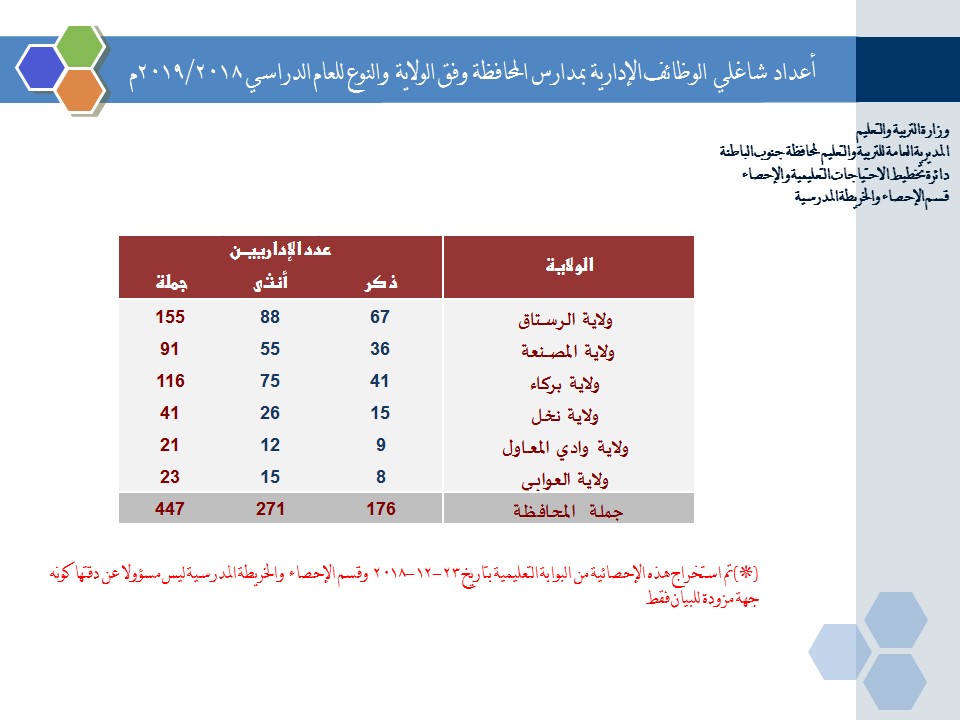 احصائيات شاغلي الوظائف الإدارية بالمدارس الحكومية بالمحافظة للعام الدراسي 2019 2018 المدونة الإحصائية