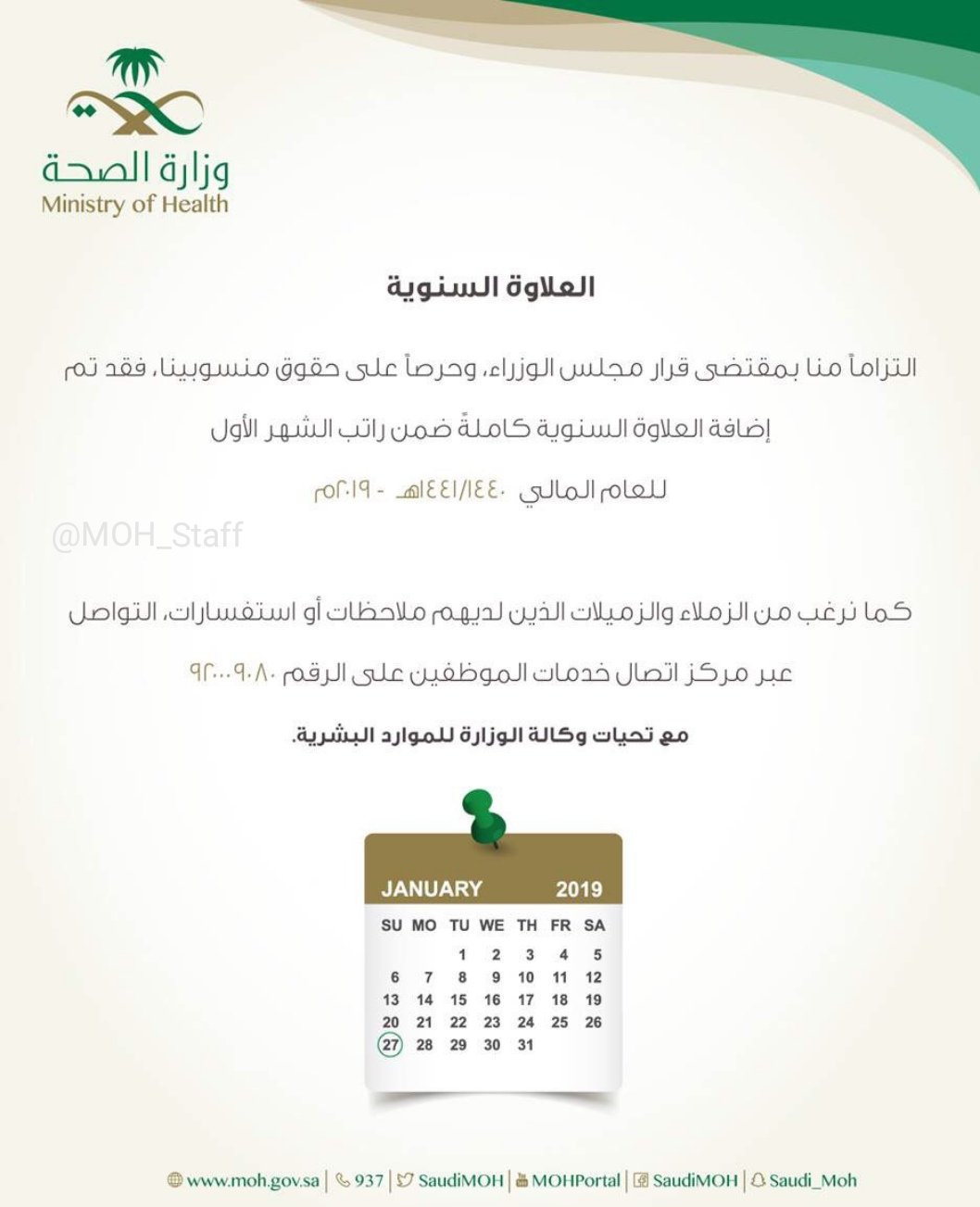 ملتقى منسوبي وزارة الصحة Na Twitteru العلاوة السنوية Moh Staff