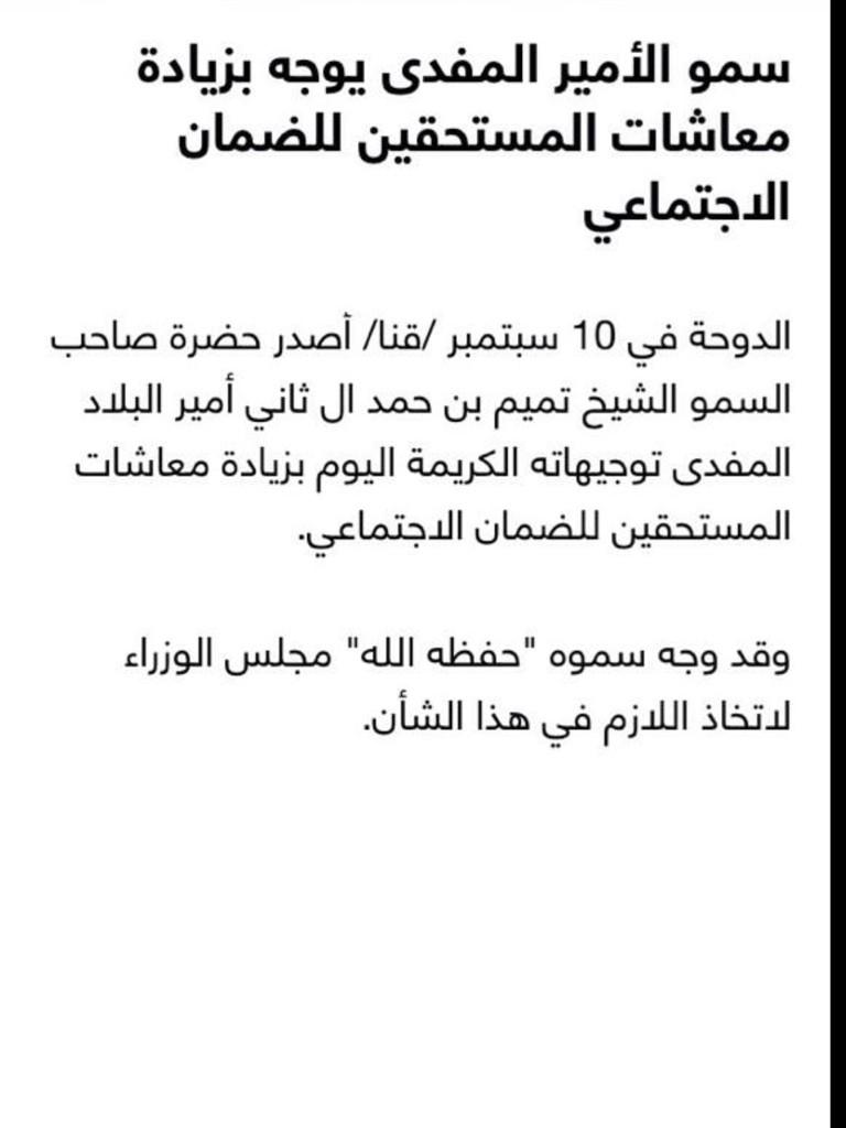 عبدالله الوذين Twitterren ألف مبروك زيادة رواتب مستحقي الضمان الإجتماعي الشؤون في قطر ليش افتخر اني قطري كعبة المضيوم Http T Co 356cxmskpg
