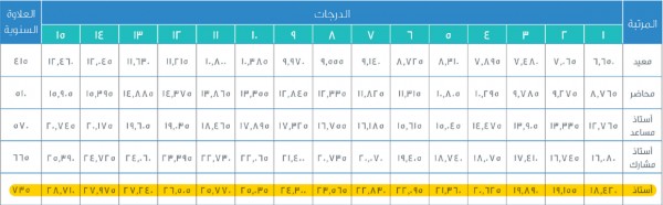 سلم رواتب أعضاء هيئة التدريس الجديد 1442 مع البدلات موقع محتويات