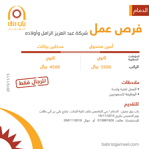 وظائف شاغرة لدى مجموعة الزامل بالدمام والخبر صحيفة المواطن الإلكترونية