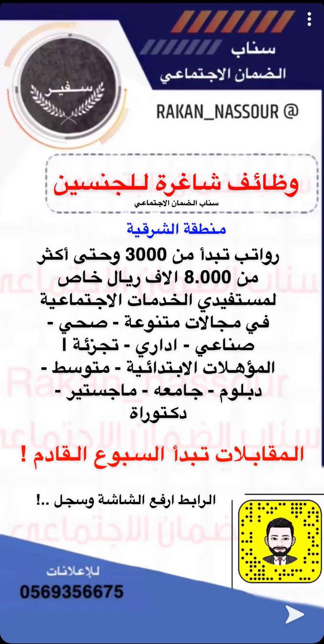 سفير الضمان الاجتماعي On Twitter وظائف شاغرة الشرقية رواتب تبدأ من 3000 وحتى أكثر من 8 000 خاص لمستفيدي الخدمات الاجتماعية في مجالات متنوعة صحي صناعي اداري تجزئة