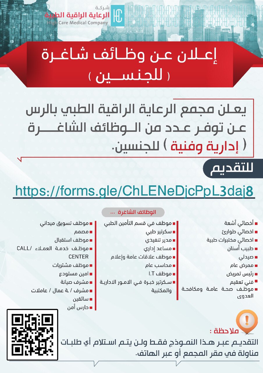 مجمع الرعاية الراقيه الطبي On Twitter اعلان وظائف شاغرة للجنسين ملاحظة التقديم عبر النموذج فقط لن يتم استلام اي طلبات مناولة في مقر المجمع أو عبر الهاتف Https T Co Awns1elato الرس