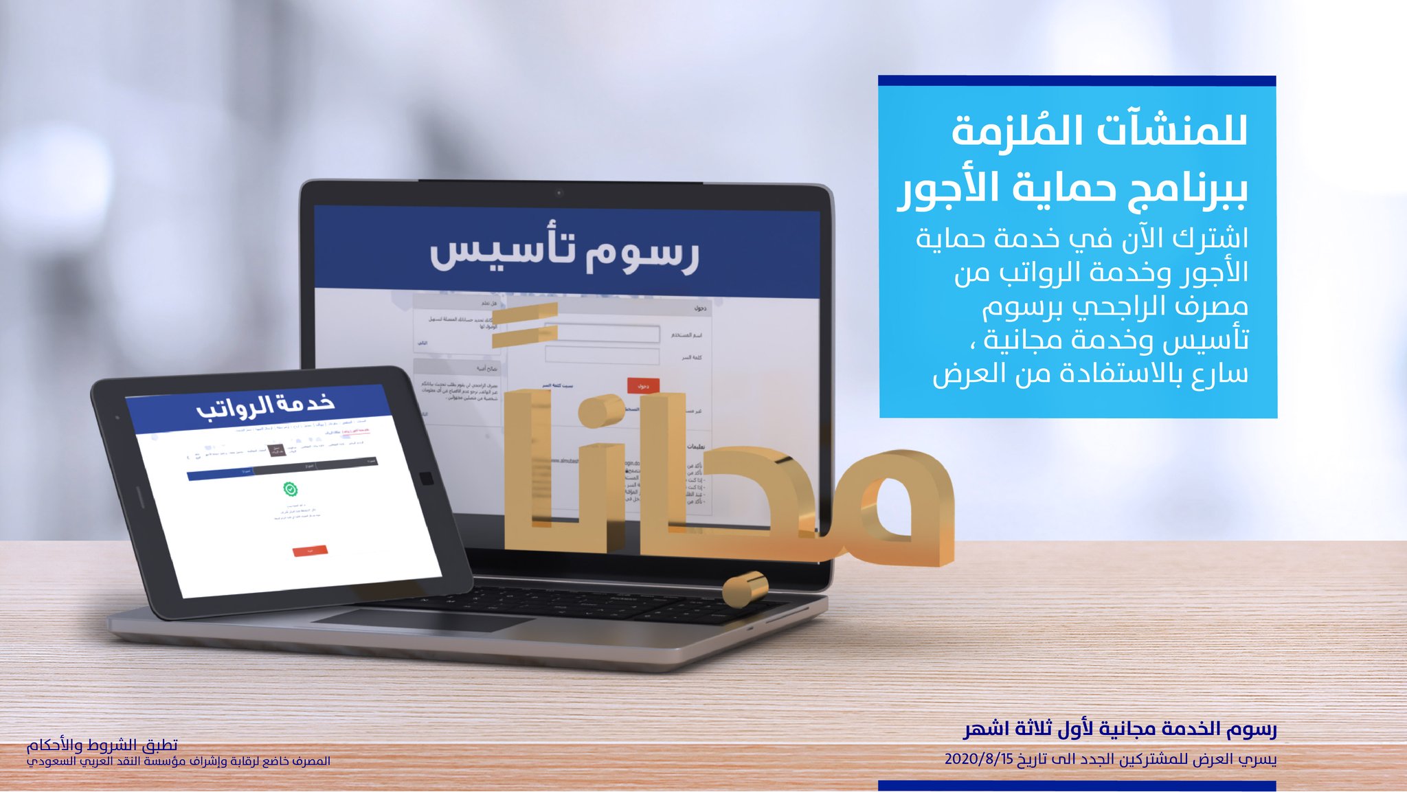 مصرف الراجحي On Twitter للمنشآت الم لزمة ببرنامج حماية الأجور اشترك الآن في خدمة حماية الأجور وخدمة الرواتب من مصرف الراجحي برسوم تأسيس وخدمة مجانية سارع بالاستفادة من العرض Https T Co T4ghsqutat Https T Co M3jbq91mr7