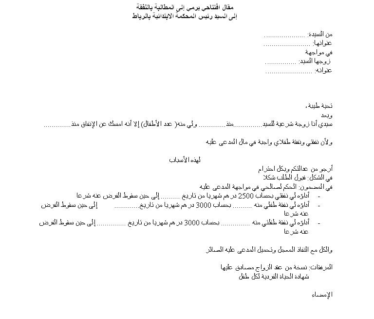 نموذج طلب نفقة تتقدم به الزوجة