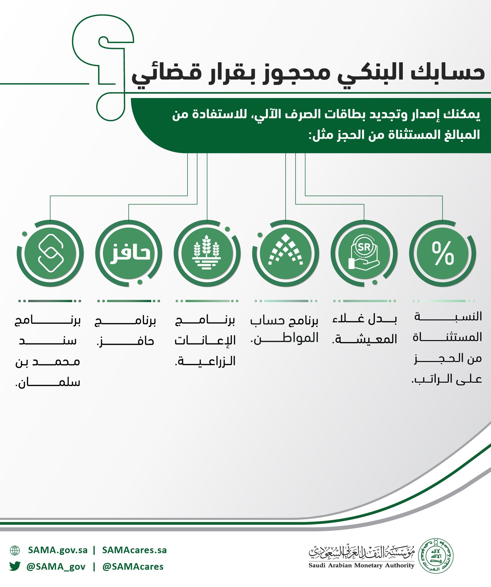 Sama البنك المركزي السعودي Sur Twitter يمكنك إصدار وتجديد بطاقات الصرف الآلي للاستفادة من المبالغ المستثناة من حجز حسابك البنكي مؤسسة النقد Sama