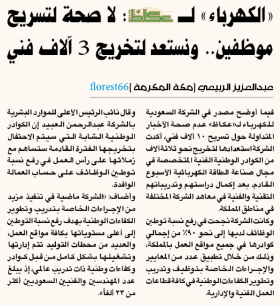 رئيس الكهرباء التحو ل الإلكتروني أجبرنا على تسريح موظفين و الورث كبير أخبار السعودية صحيفة عكاظ