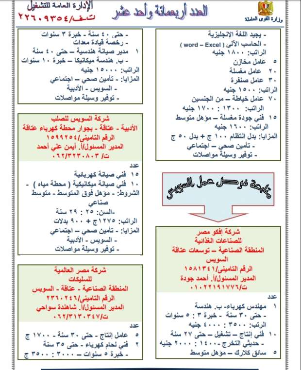 صور القوى العاملة تعلن عن 2782 وظيفة شاغرة برواتب تصل إلى 4000 جنيه أي خدمة الوطن
