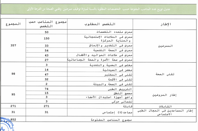 مباريات لتوظيف 31 مساعد اجتماعي و271 قابلة و95 مروض و98 تقني و357 ممرض و299 طبيب آخر أجل 11 ماي 2020