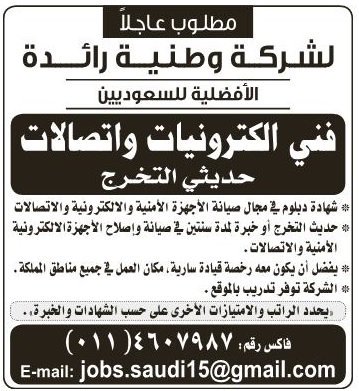 مجموعة من الوظائف الخالية المطلوبة للعمل بالسعودية ومقابلات فورية غدا 19 اغسطس 2019