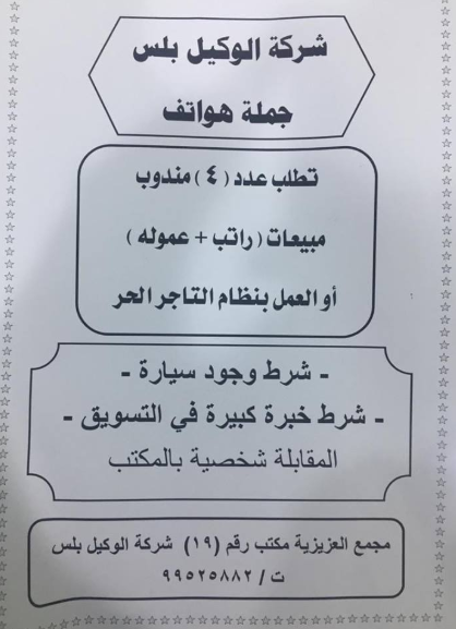 وظيفة في مدينة نصر القاهرة مطلوب تلي سيلز وكول سريع