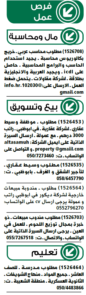 وظائف شاغرة جريدة الوسيط ابوظبي لجميع الجنسيات برواتب مميزة تصل إلى 8000 درهم تصفح الان